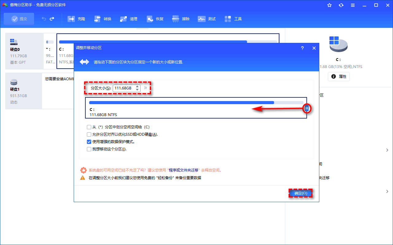 方法2:使用傲梅分区助手无损扩容c盘