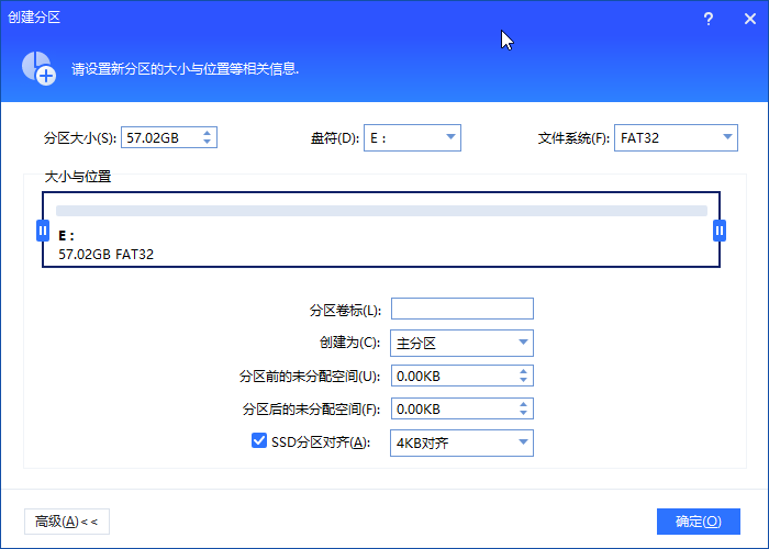 步骤4:设置盘符、分区类型(建议 NTFS),确认无误后点击“确定”。