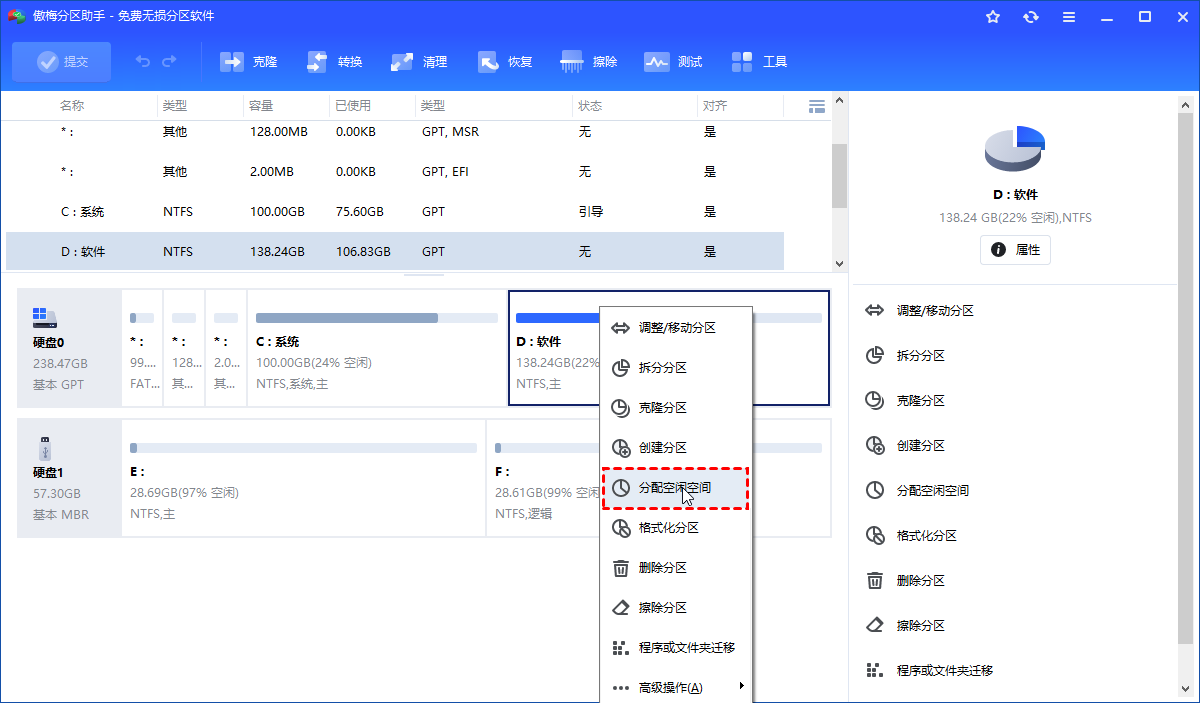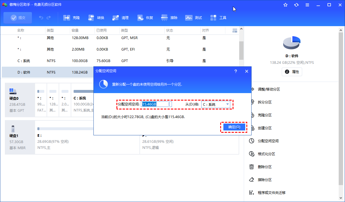 对于大多数用户来说,D盘里存着游戏存档、工作文档、珍藏资源,绝对不能轻易动。傲梅分区助手的优势在于可以跨分区调配空间,不需要你动D盘里的任何东西。