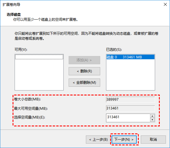 步骤4. 接下来按照扩展卷向导,设置要扩展的分区大小。