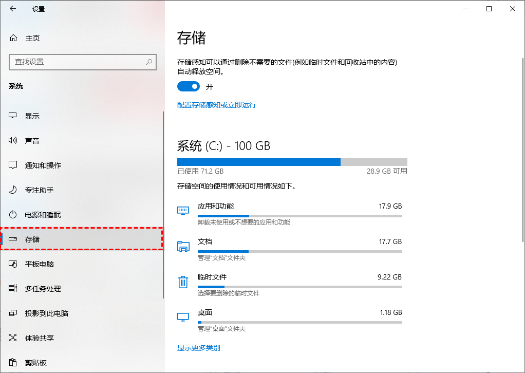 1. 按Win+I打开设置,点击"系统" > "存储"。