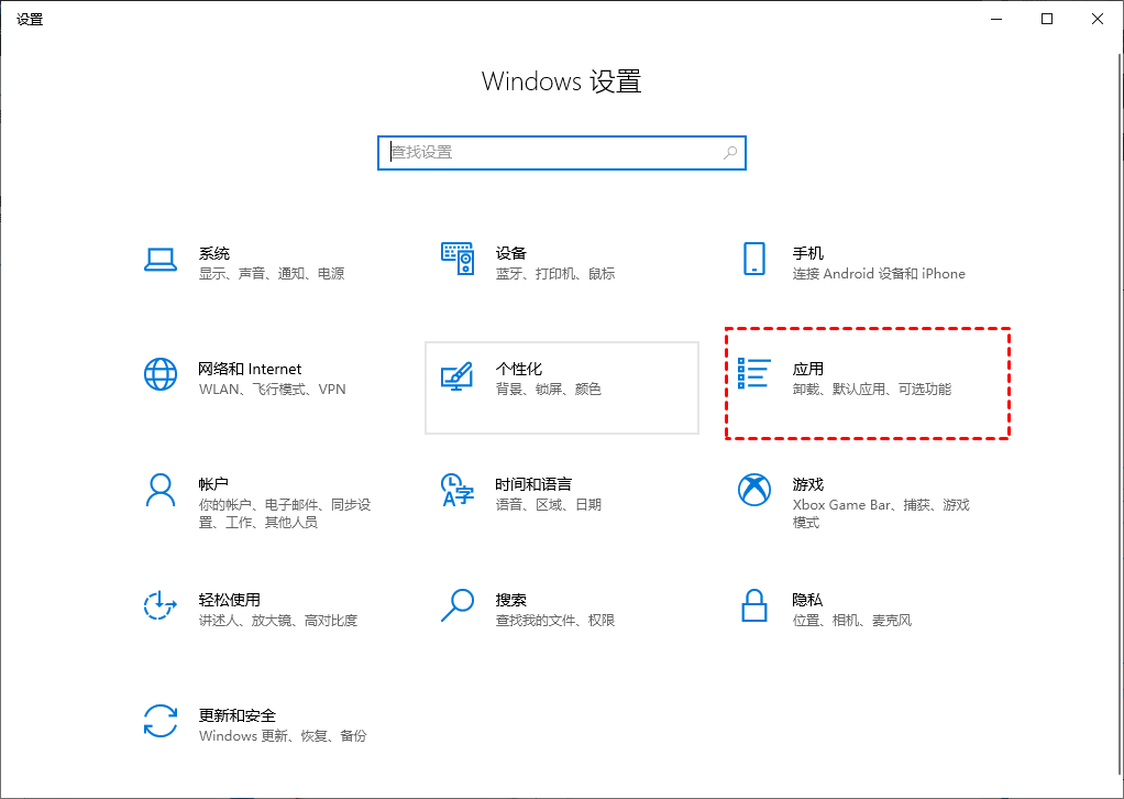 步骤 1. 按下键盘上的Win+I组合键打开"设置",然后点击"应用"→"应用和功能"。
