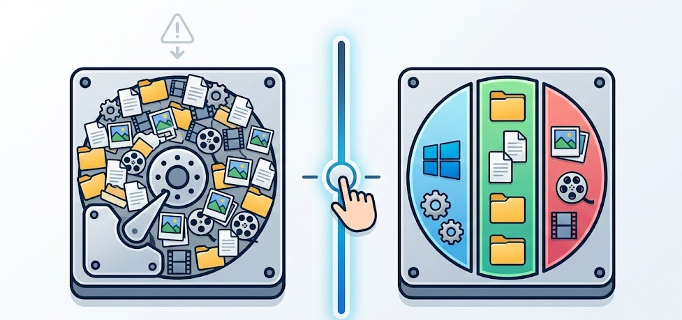 相信不少朋友新买的电脑拿回家,打开“此电脑”一看,好家伙,几百GB的硬盘居然只有一个C盘。系统文件、工作文档、珍贵的照片和电影全塞在一起,这不仅看着乱,一旦系统崩溃需要重装,那真是欲哭无泪。难道就没有办法在不动原有数据的前提下,实现Win11分盘吗?