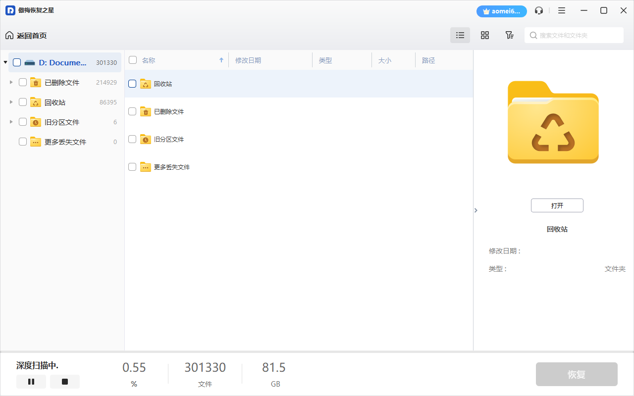 傲梅恢复之星是一款专业安全的数据恢复软件,使用它可以从各种数据丢失场景中找回数据,对意外删除、格式化、分区损坏、电脑病毒损坏、系统崩溃或其他未知原因而丢失的数据进行恢复。可以恢复Word、Excel、PPT、照片、视频、音频、邮件、网页、压缩文件等200+种数据。支持Windows 11/10/8/7 & Windows Server。